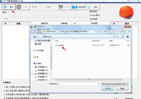 2. Go to the factroy tool, and open the file" Update" in factroy tool.