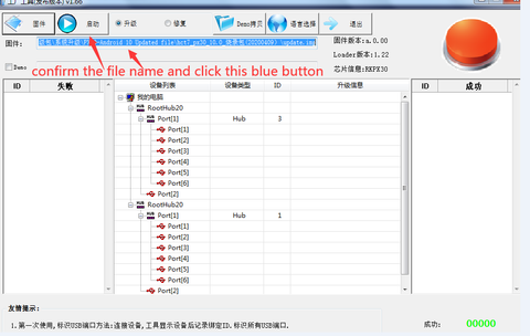 5. Ok,After completing these steps, the computer will appear to update the firmware. Just wait for the firmware update to complete. Note: Pls connect device to PC with a short USB cable. ( The shorter the better, otherwise the PC cannot read the device).