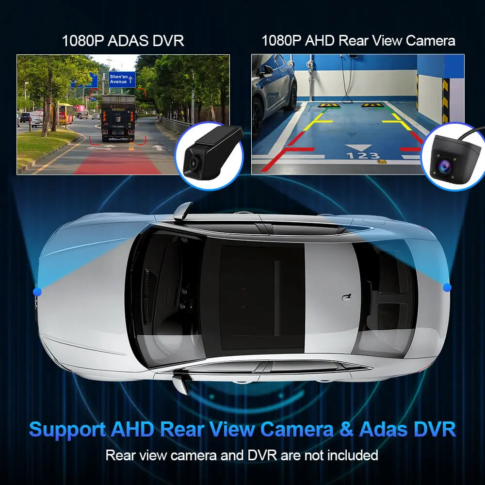 Support ADAS USB DVR input, the screen will display the distance of obstacles and alarm.