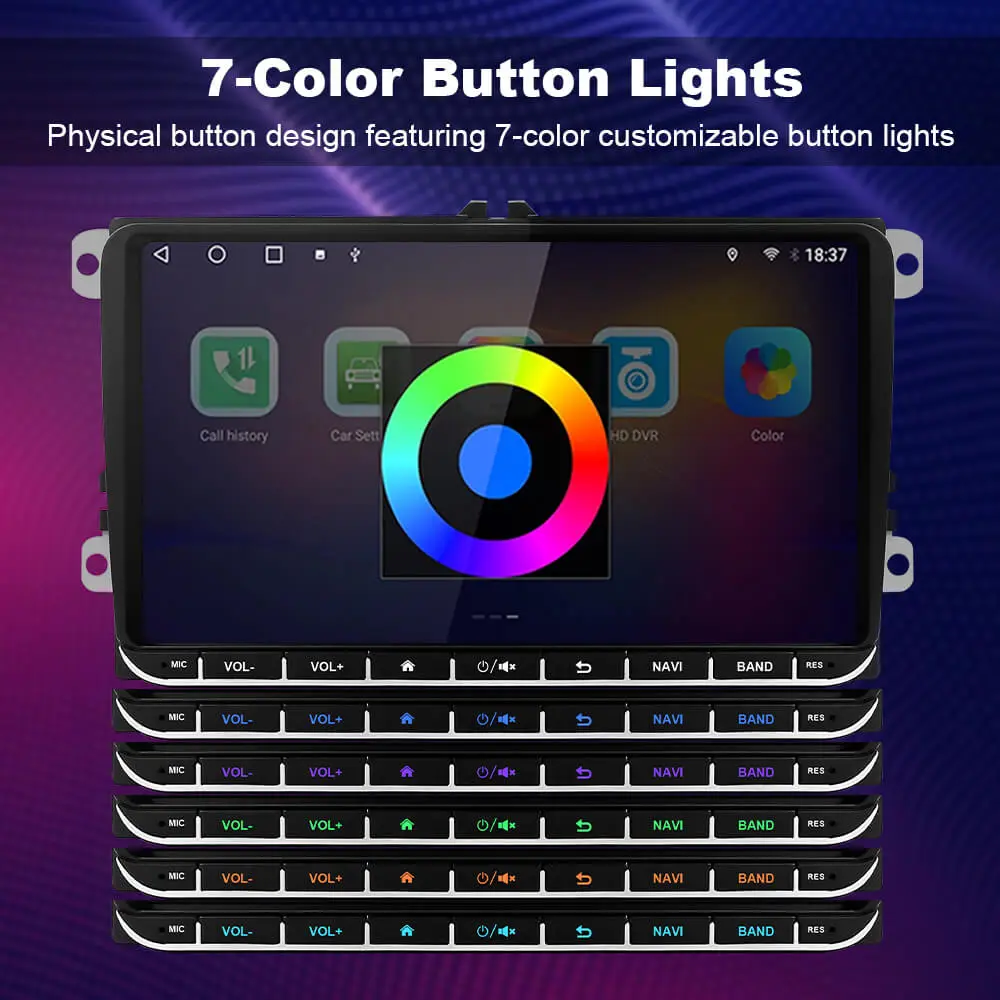 Android 14 9-inch Car Radio for VW/Volkswagen/POLO/Golf/Skoda/Seat/Leon/PASSAT B61. 7 color Button Key LightAdjust and save the color of the physical button backlights!2. Built in Fan and Fan APK Compared to the...
