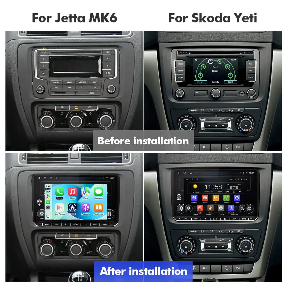 Easy installation, complete connectivity. This android car radio was installed in the dashboard of my VW Tiguan 5N. Thanks to the Canbus module, all steering wheel controls are recognized. Android applications are fluid, Carplay connects wirelessly via Bluetooth, and everything works without a hitch.