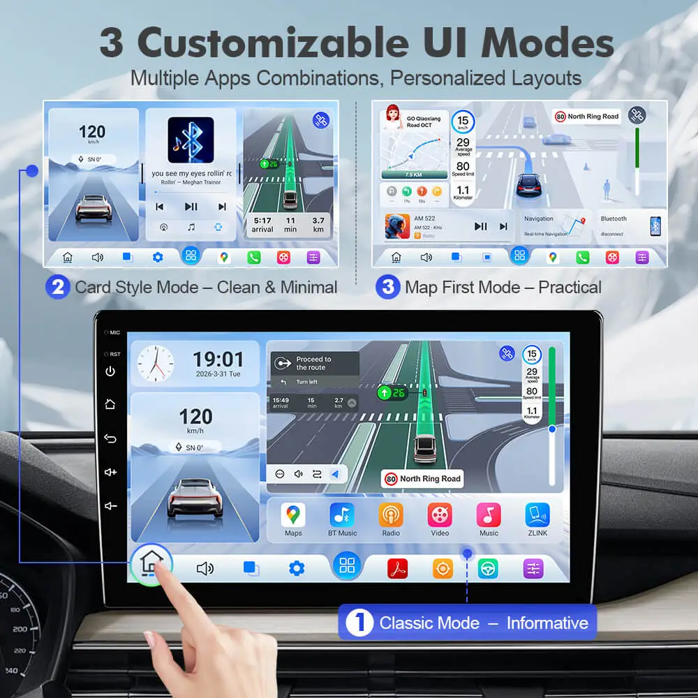 Make your dashboard perfectly fit your driving needs with 3 built-in, switchable UI modes, each engineered for a different driving scenario:
