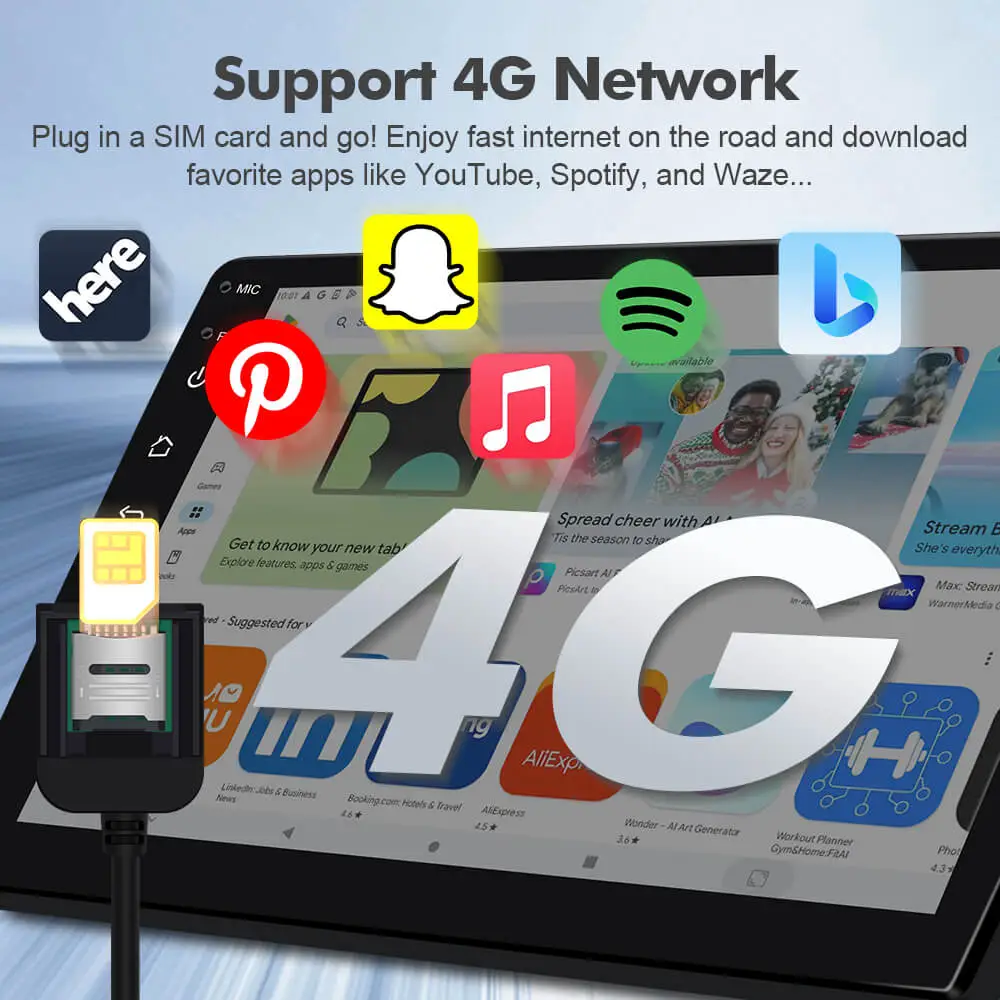 Enjoy fast internect on the road and download favorite apps like Youtube, Spotiry and Waze..