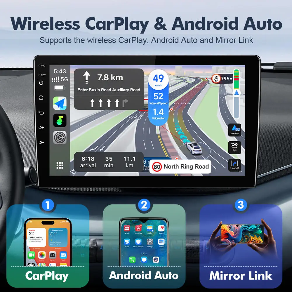 Built-in wireless Carplay, Android Auto and Mirror link.