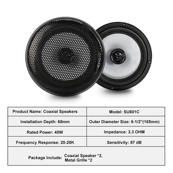 Brand Name: ISUDAR Item Size: 6-1/2"(165mm) Model Name: SU601C Impedance: 3.3ohm Out Power: 40W RMS Car Make: Universal Audio Sensitivity: 87dB Voltage: 12V Material Type: Ceramic Polypropylene Speakers Types: Coaxial speakers Frequency Range (Hz): 20-20K Item Type: Speakers Item Weight: 2kg Color Name: Black...