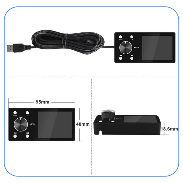 4.3 Inch Screen USB Remote Control, Multiple Buttons, Convenient ControlThe remote control have 4 buttons and 1 potentiometer switch.1. Returned, long press comes into setting menu;2. Mode, input source selection;3....