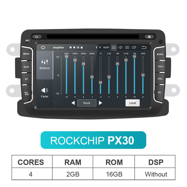 Model Name: PX6-RE0701 Voltage: 12V RAM: 4G       ROM: 64GB Interface: ISO Double CPU: ROCKCHIP PX6 / PX30 (Optional) Digital Sound Processor: Optional Touch Screen: Capacitive Touch Screen Resolution: 1024*600...