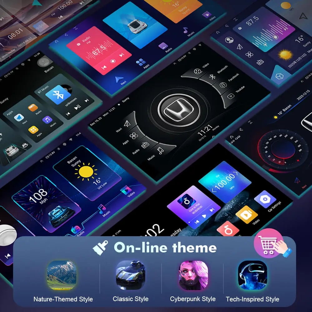 The app offers a wide variety of themes to choose from, including Agama style, natural style, tech style, cyberpunk style, cute animal style, holiday themes, and more. You can set the theme of your car radio based on your mood, time of day, and personal preferences.