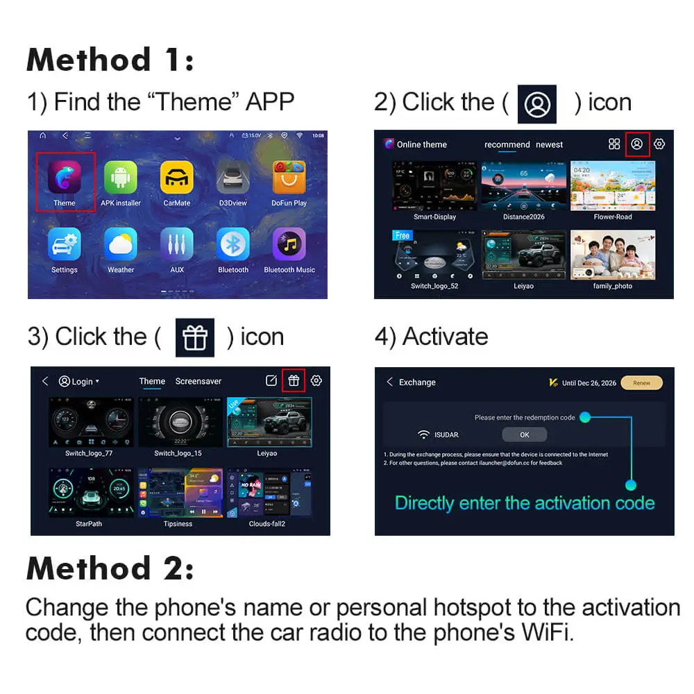 3. The “THEME” app is built with car radio, it is not possible to download, If your car radio do not have this app, pls do not buy it.