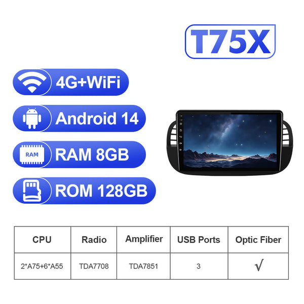 Android 14 T75 series Car Radio for Universal Cars - What Differences with T72 ? 1. Differences in hardware: New T75: UIS7865, Android 14, GPU: ARM Mali-G57, CPU: Octa-core 2.2GHz VS...