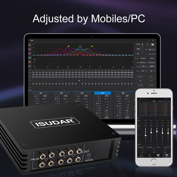 1. Installation ISUDAR app into mobile and turn on, then play car music; 2. Click "Auto EQ" in the setting of App, accord to the tip and take your mobile in a suitable place; 3. Wait "Auto adjust" end, click " Save" to save