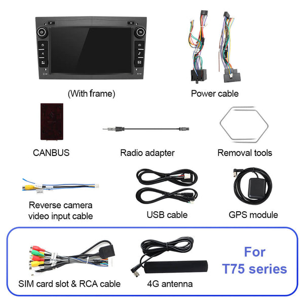 T75X = 8GB RAM + 128GB ROM, CPU: 2x A75 @ 2.2GHz + 6x A55 @ 1.8GHz, RAM + ROM: 8GB + 128GB, Radio Chip: TDA7708, FM/AM/RDS , Amplifier Chip: TDA7851 4x48W