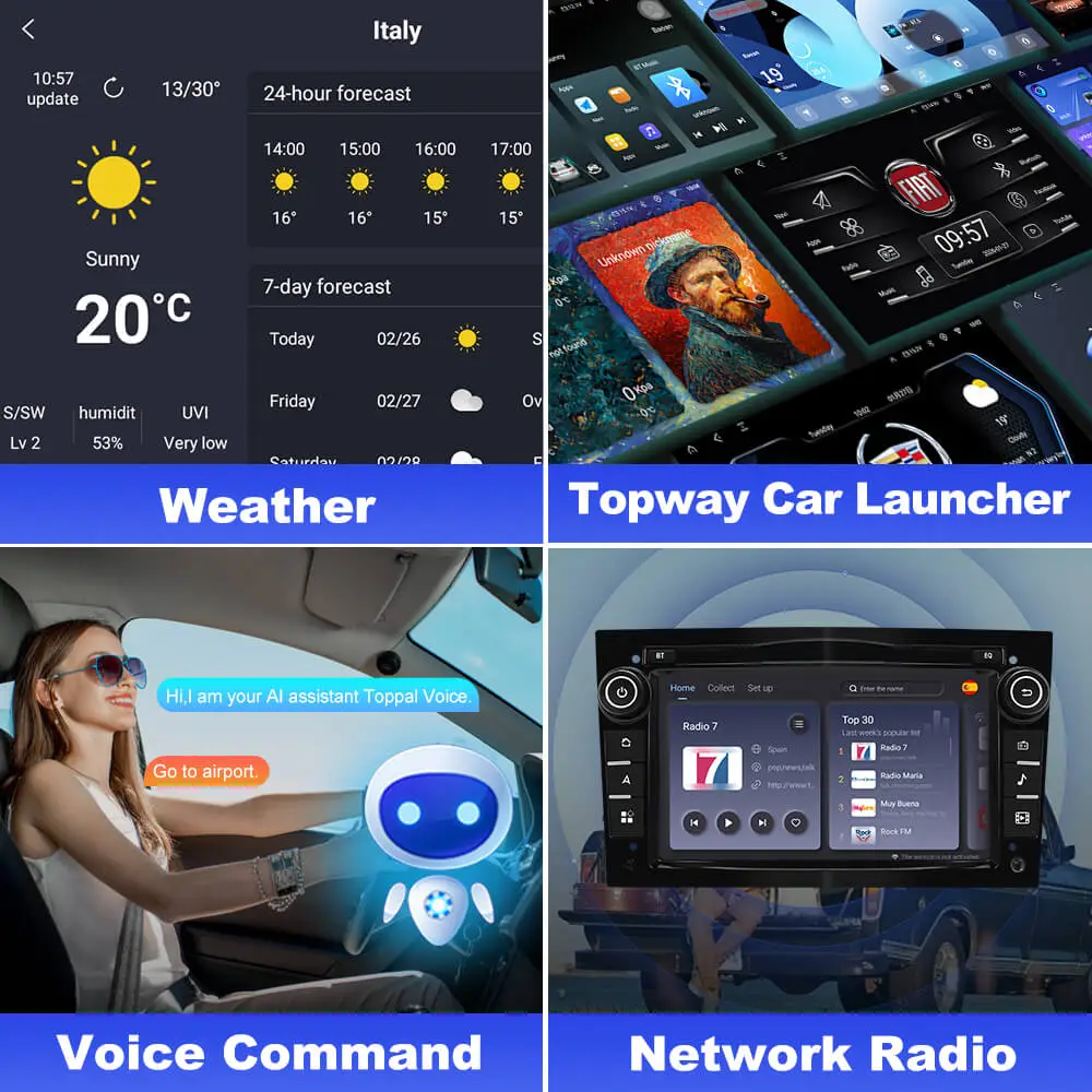 Supports Online Weather, Topway Theme UI, Voice Control, and Networ Radio