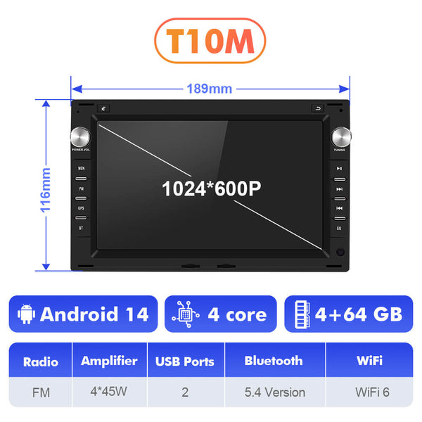 T10M = 4GB RAM + 64GB ROM, CPU: 4x Cortex™-A53 @ 1.45GHz, RAM + ROM: 4GB + 64GB, Radio Chip: 8035-FM, Amplifier Chip: YD7388 4x45W