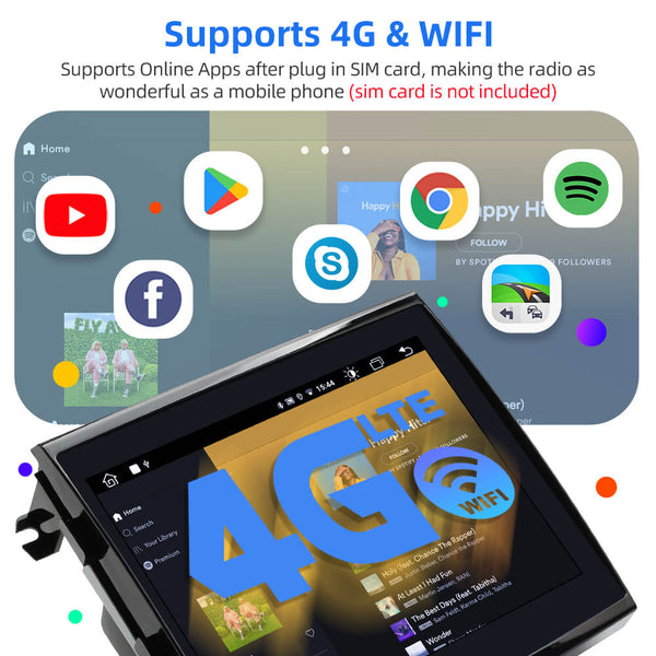 4. Supports 4G & WIFI. Supports applications download from Player Store: Youtube, Spotify, Facebook...