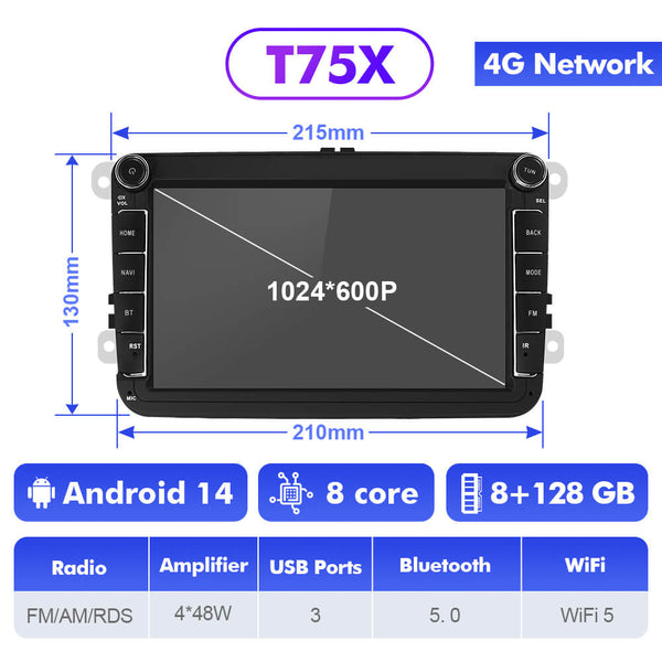 Android 14 8-inch Car Radio for VW/Volkswagen/POLO/Golf/Skoda/Seat/Leon/PASSAT B6