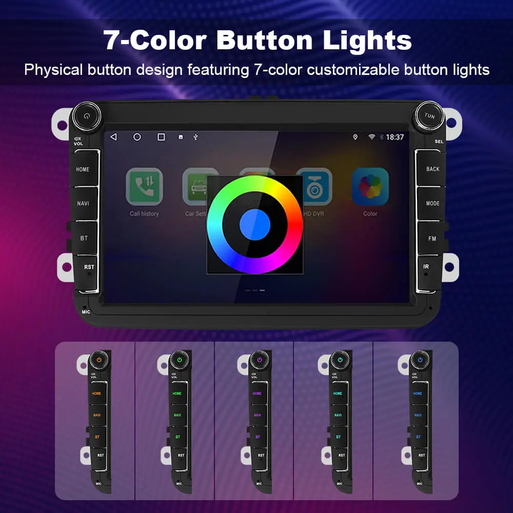 Android 14 8-inch Car Radio for VW/Volkswagen/POLO/Golf/Skoda/Seat/Leon/PASSAT B61. 7 color Button Key LightAdjust and save the color of the physical button backlights!2. Built in Fan and Fan APK Compared to the...