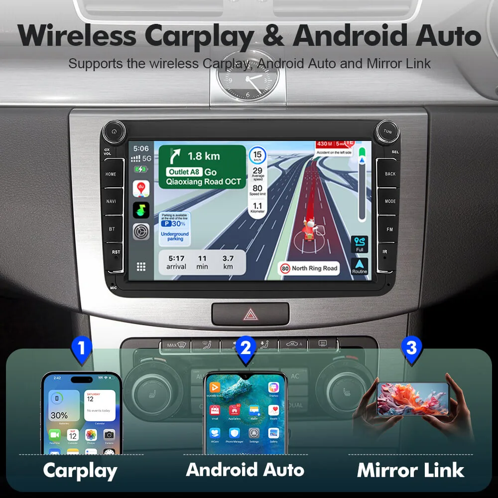 4.Built-in Wireless CarPlay, Android Auto & MirrorLink